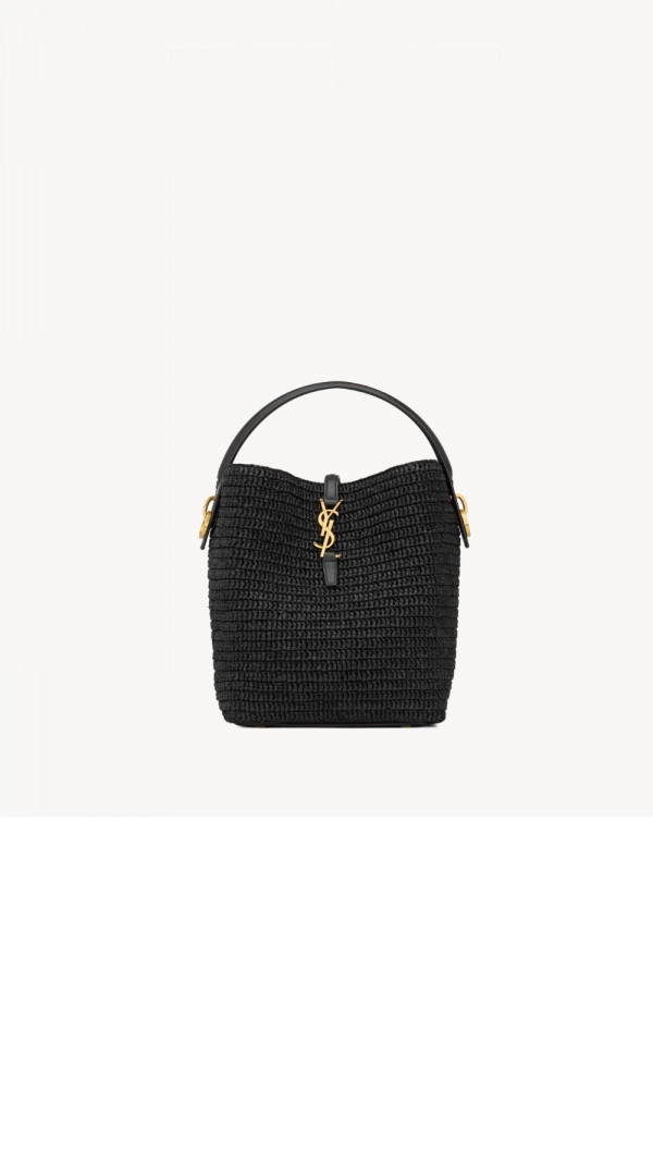 생로랑 우븐 라피아 및 베지터블 태닝 가죽 소재의 LE 37 773991