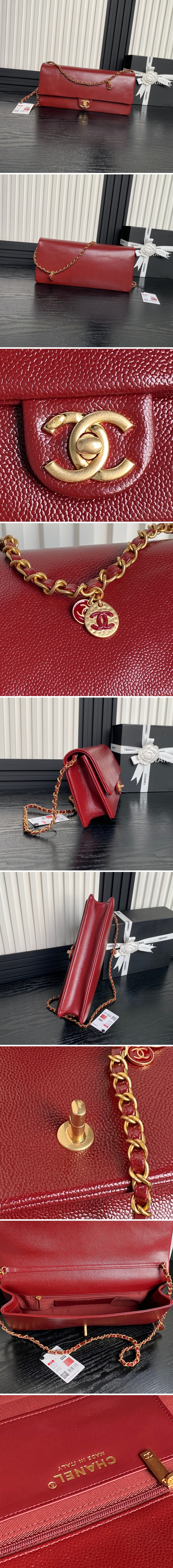 샤넬 맥시 클러치백 유관 그레인드 카프스킨 골드 32cm