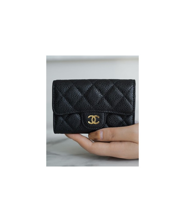 • 샤넬 클래식 똑딱이 카드슬립 카드지갑 캐비어 금장 AP0214