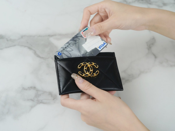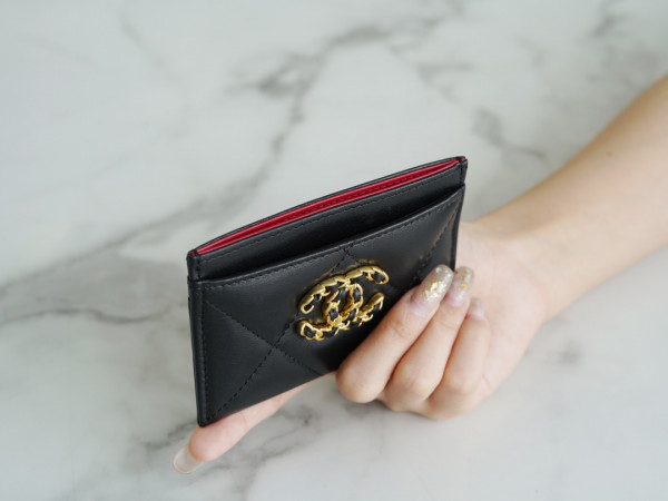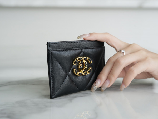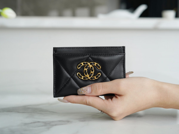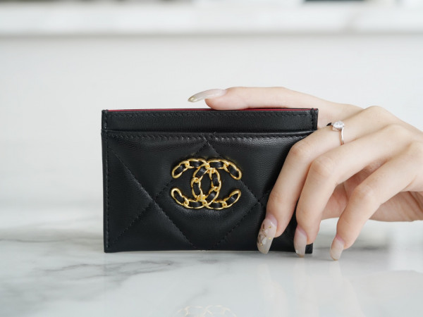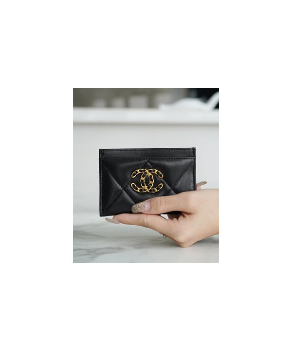 • 샤넬 카드 지갑 램스킨 금장 블랙 AP1167