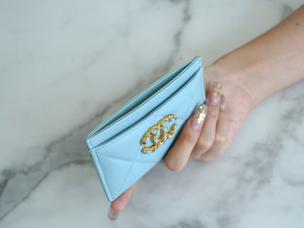 • 샤넬 카드 지갑 램스킨 금장 스카이 AP1167