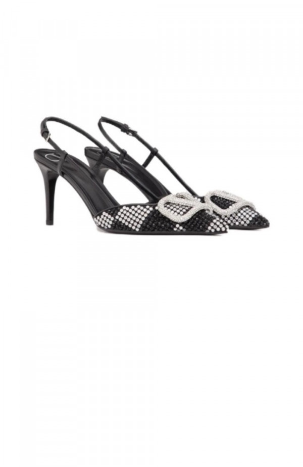 • 발렌티노 로고 크리스탈 임베리쉬드 레더 슬링백 펌프스 3W0S0R