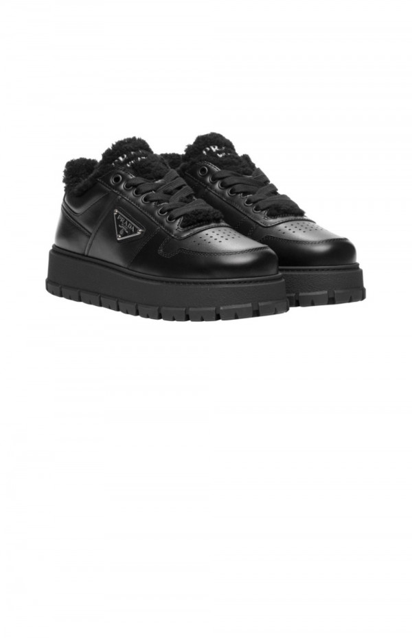 프라다 시어링 디테일 레더 스니커즈 1E947M