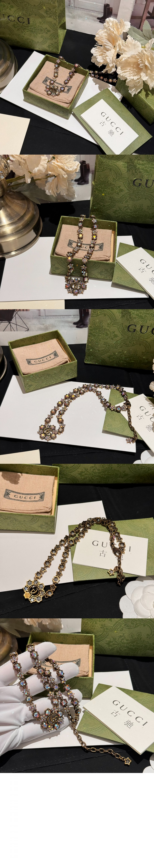 구찌 크리스털 꽃 목걸이 753805