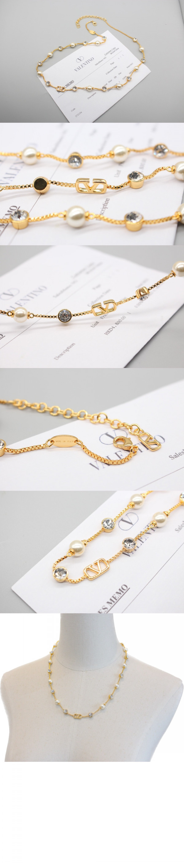발렌티노 크리스털 장식 브이로고 시그니처 메탈 네크리스
