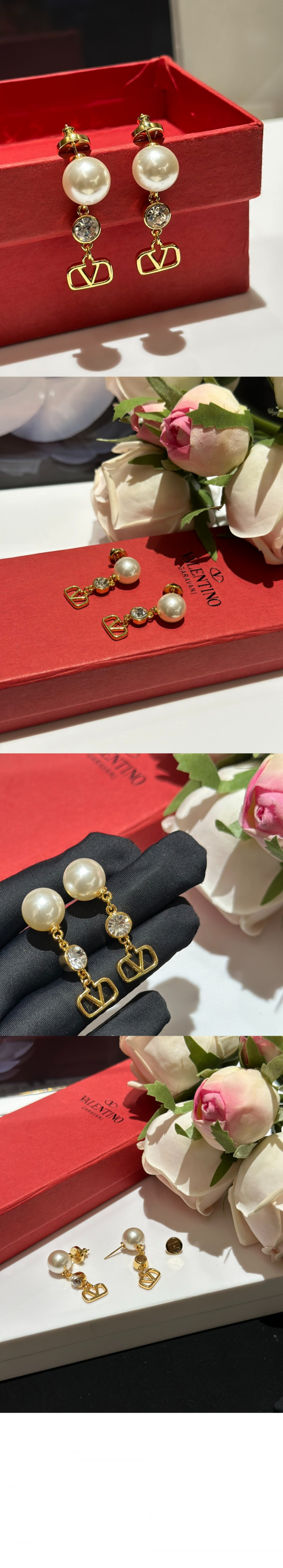 발렌티노 크리스털 장식 브이로고 시그니처 이어링