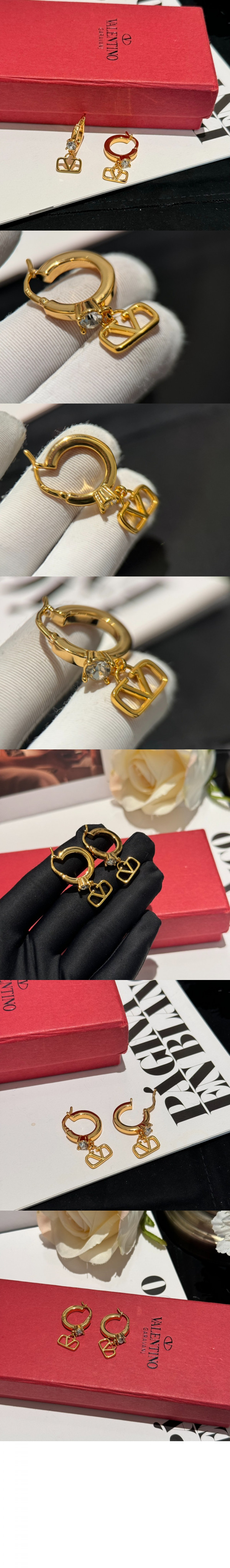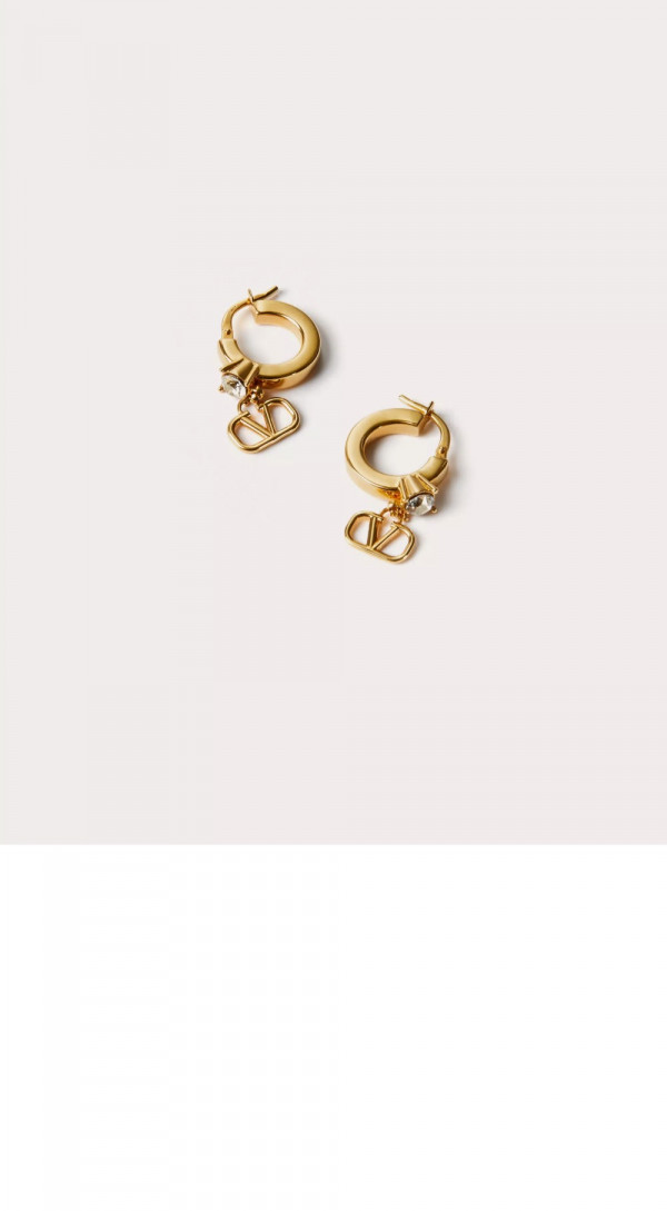 • 발렌티노 크리스털 장식 미니 브이로고 시그니처 메탈 이어링