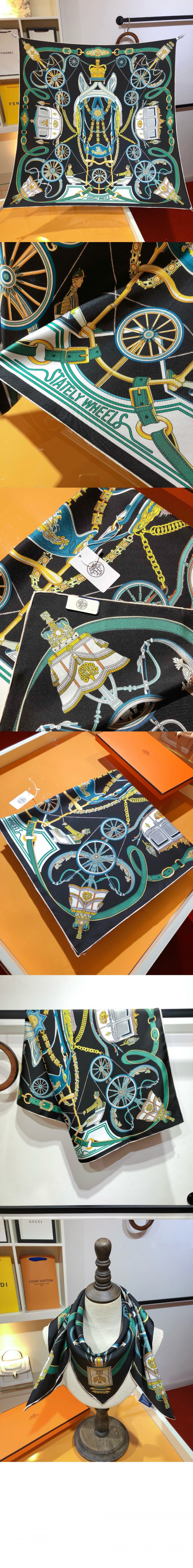에르메스 Stately Wheels 스카프 90