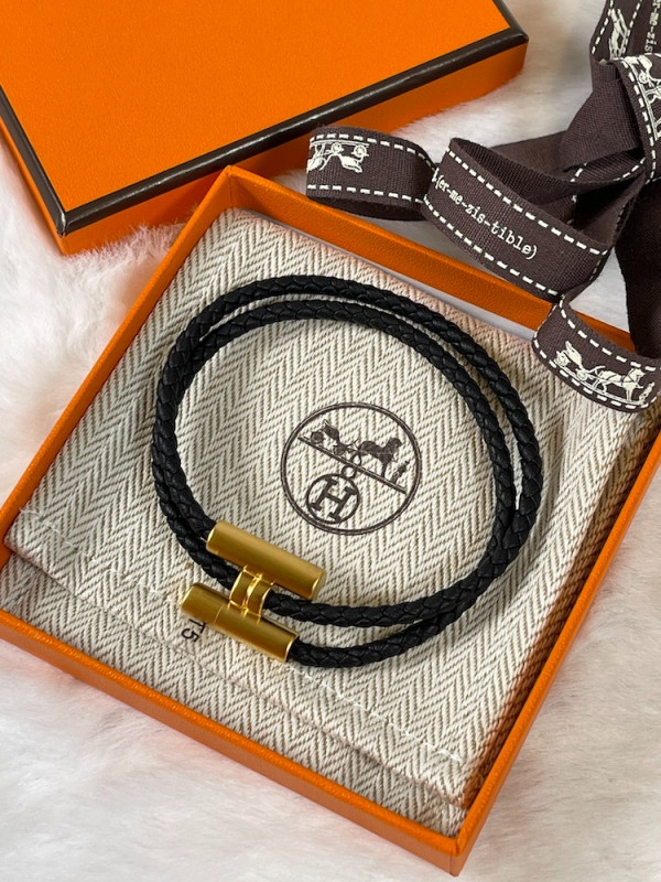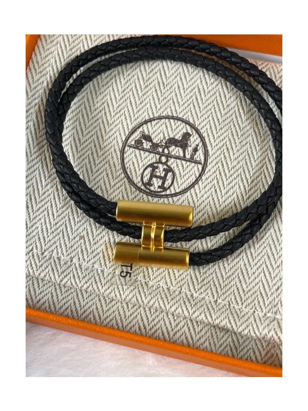 에르메스 Tournis Tresse 팔찌 블랙 금장