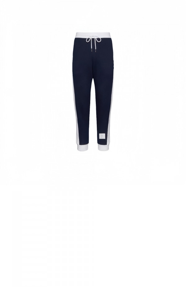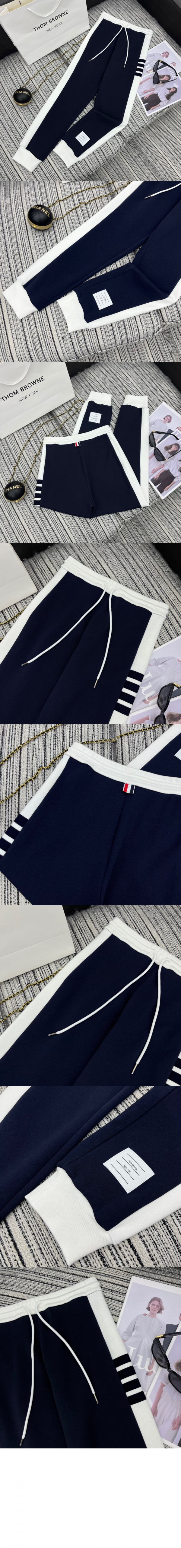 톰브라운 로고 패치 드로스트링 코튼 팬츠