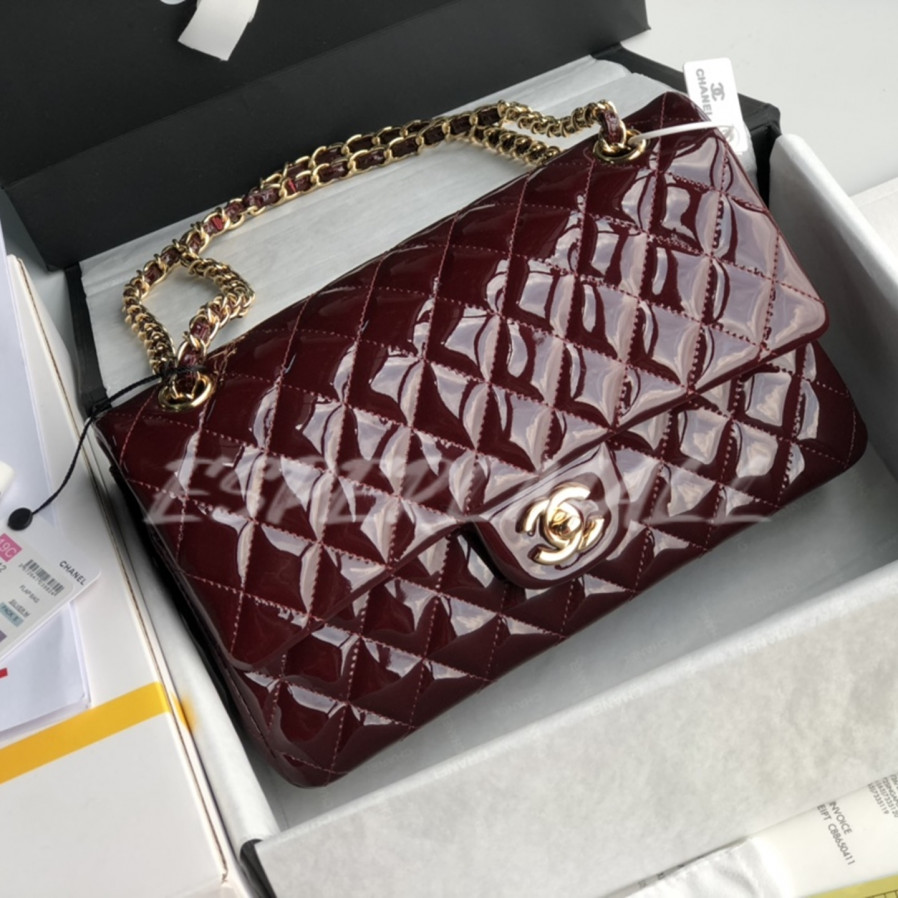 샤넬 클래식 미디움 플랩백 페이던트 버건디