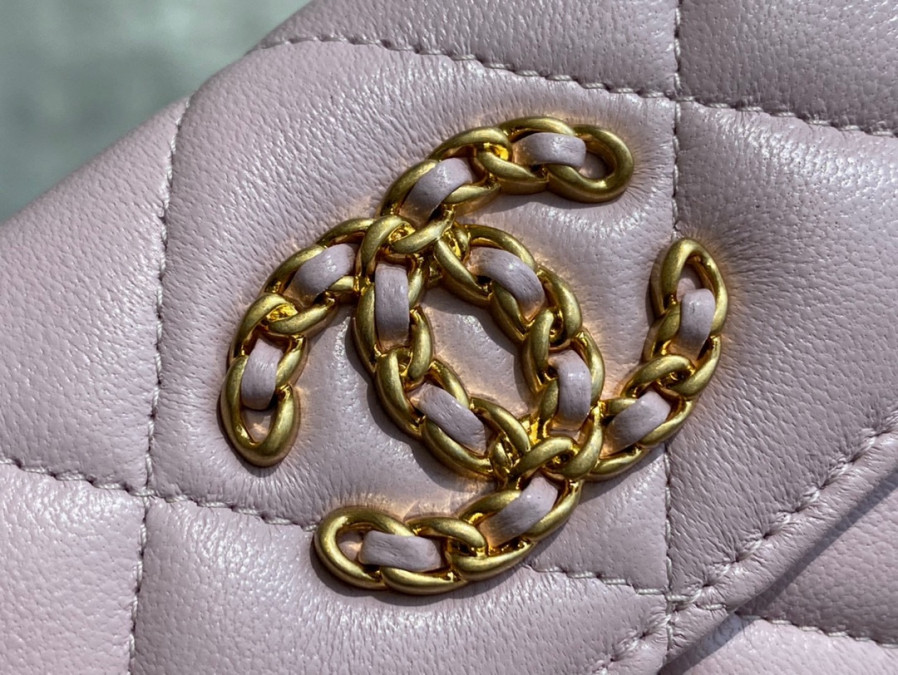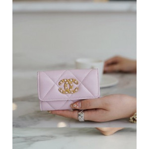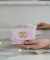 샤넬 19 플랩 카드지갑 램스킨 금장 연핑크 AP1790