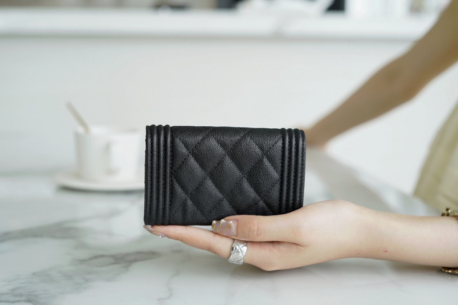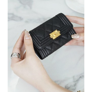 샤넬 보이 플랩 체인 카드지갑 캐비어 금장