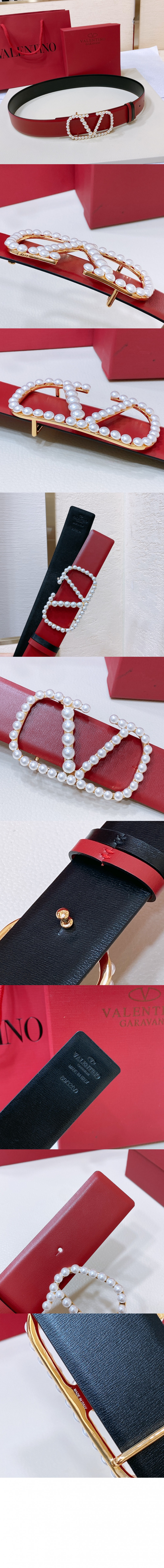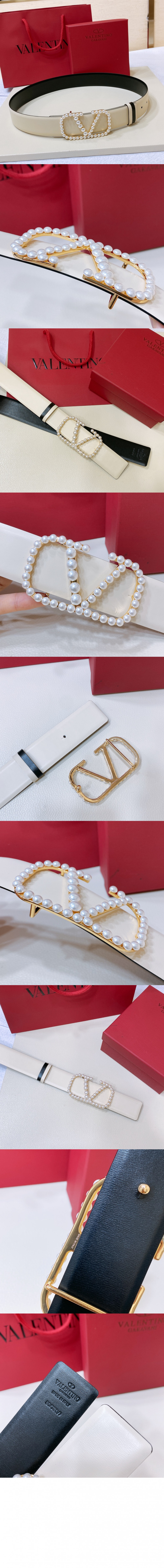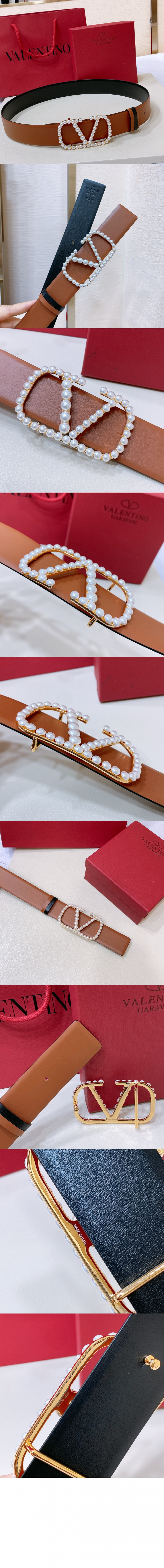 발렌티노 진주 광택이 있는 송아지 가죽 벨트 > 하이엔드 여성관