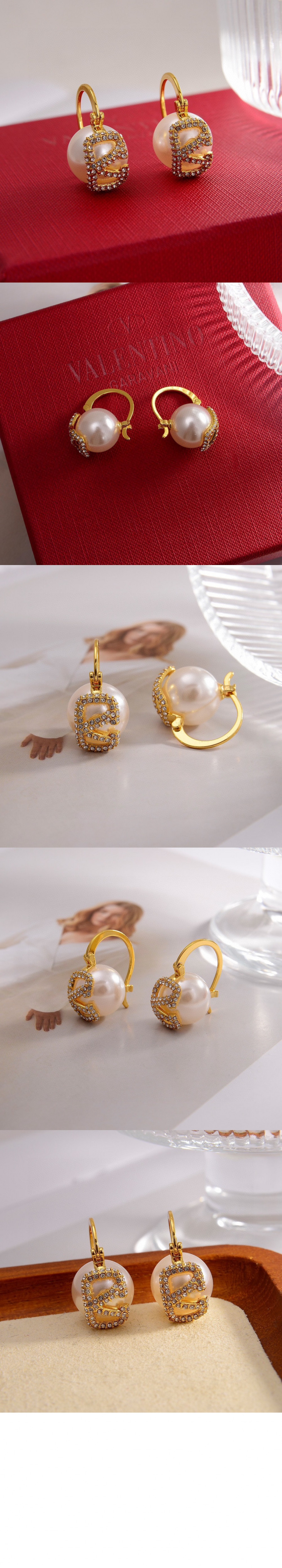 발렌티노 모조 진주와 큐빅 이어링