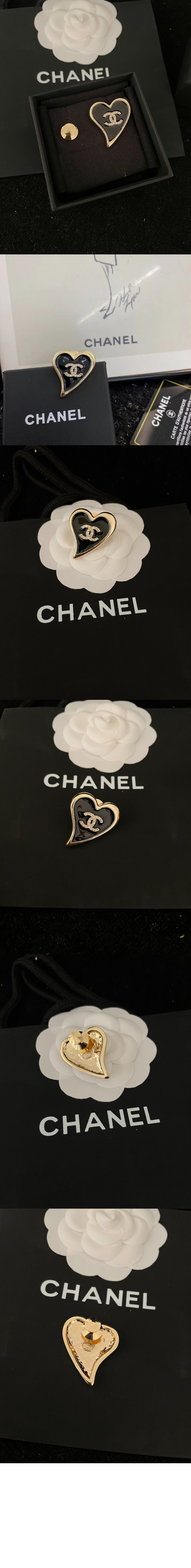 샤넬 CC로고 하트 핀 라인스톤 브로치 AB8041