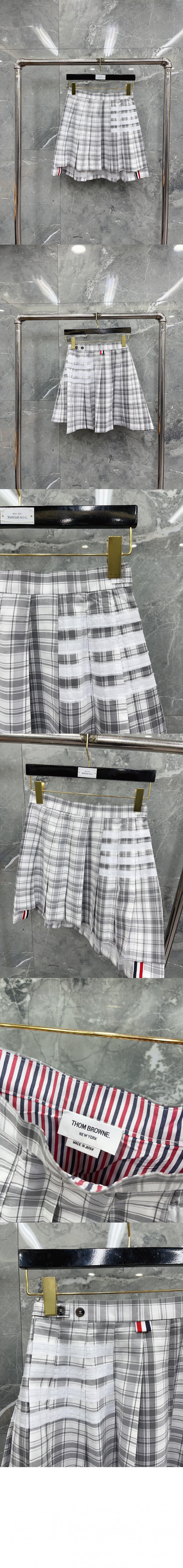 톰브라운 로고 체크 스커트