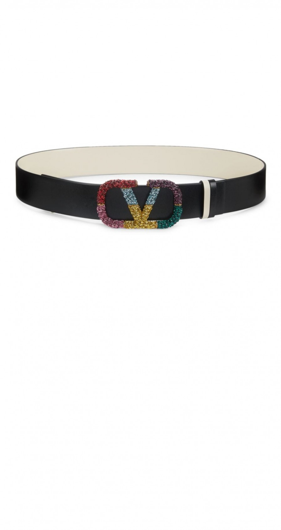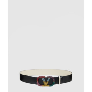 발렌티노 양면 크리스탈 장식 가죽 벨트