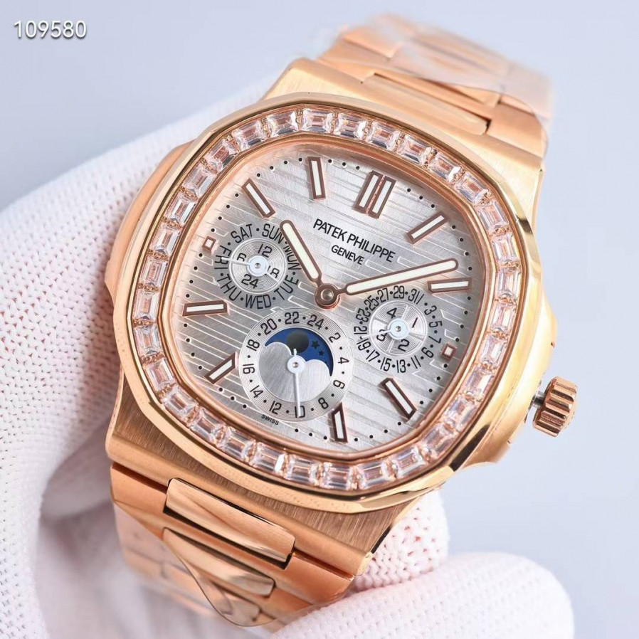 파텍필립 노틸러스 퍼페츄얼 캘린더 바게트 다이아 18k 도금 브라운 컬러 시계 워치