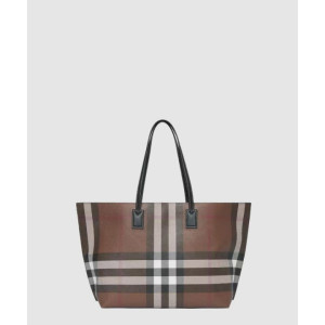 버버리 체크 레더 미디움 토트백 80525041
