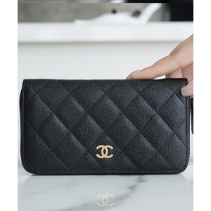 샤넬 클래식 롱 플랩 지갑 캐비어 금장 A31509