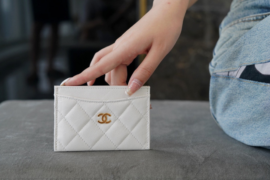 샤넬 클래식 카드지갑 캐비어 금장 화이트 AP0213