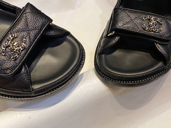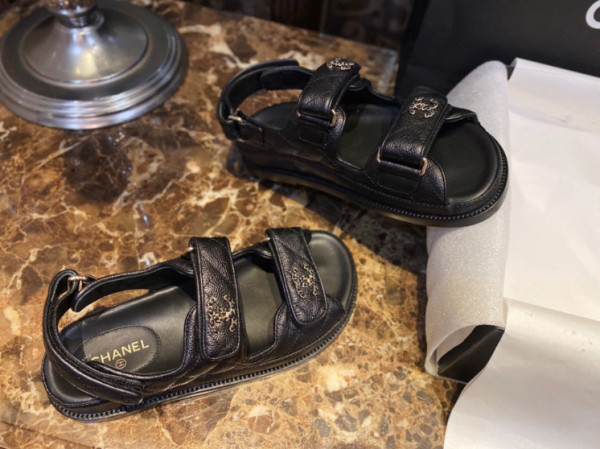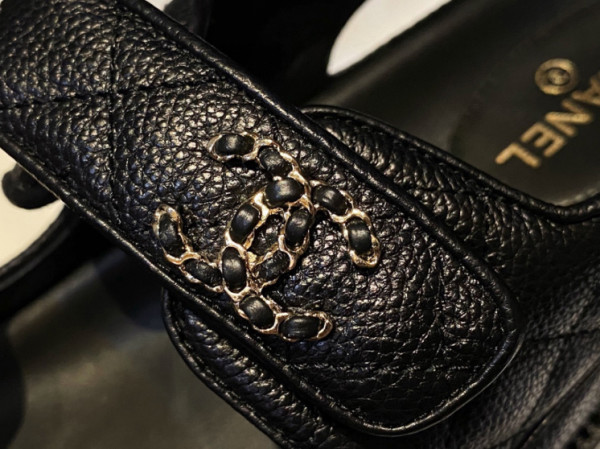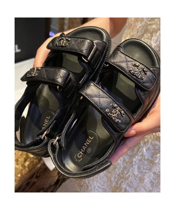 샤넬 레더 벨크로샌들 통굽가죽 스트랩샌들 G35927