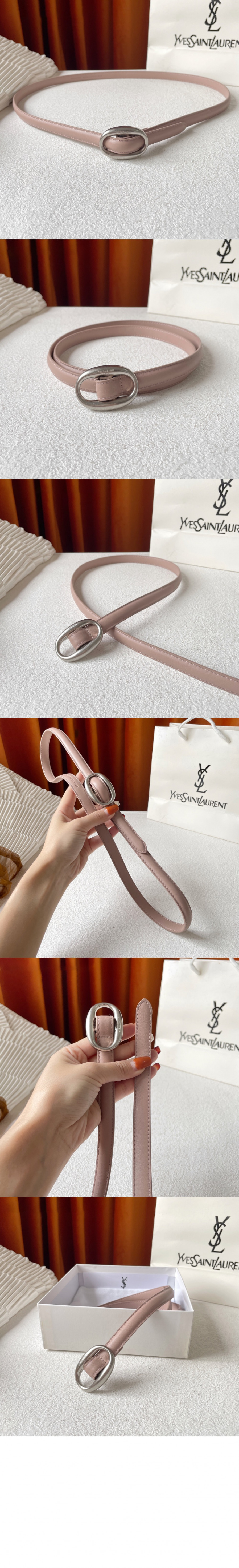 생로랑 부드러운 가죽 소재의 타원형 버클 슬림 벨트 756409 > 하이엔드 여성관