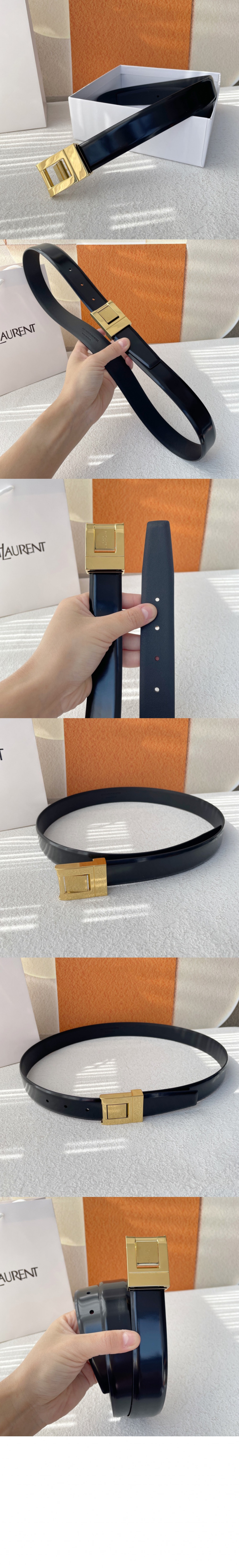생로랑 부드러운 가죽 소재의 생 로랑 스퀘어 버클 벨트 733514 > 하이엔드 여성관