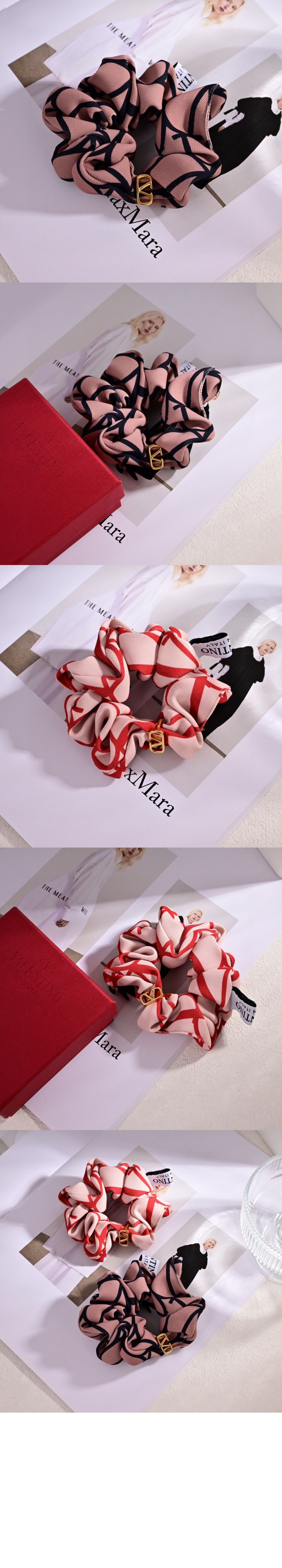 발렌티노 트왈 이코노그라프 브이로고 아플리케 장식 실크 스크런치 세트 > 하이엔드 여성관