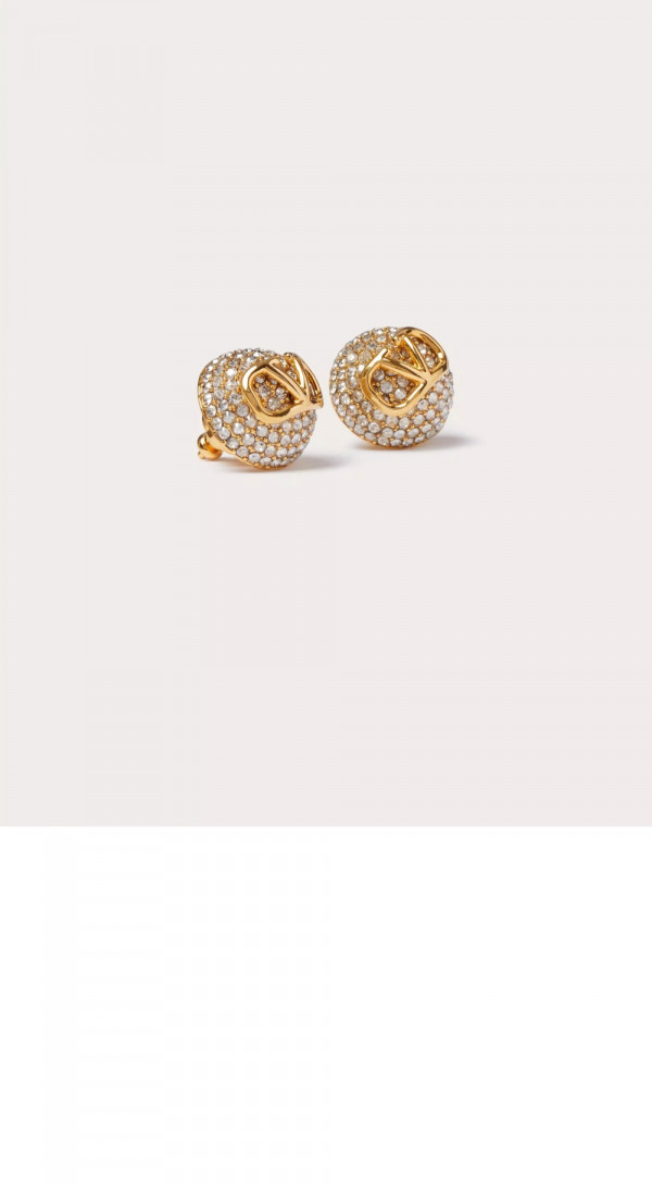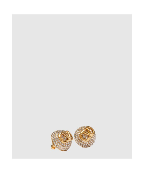 발렌티노 크리스털 장식 미니 브이로고 시그니처 메탈 이어링
