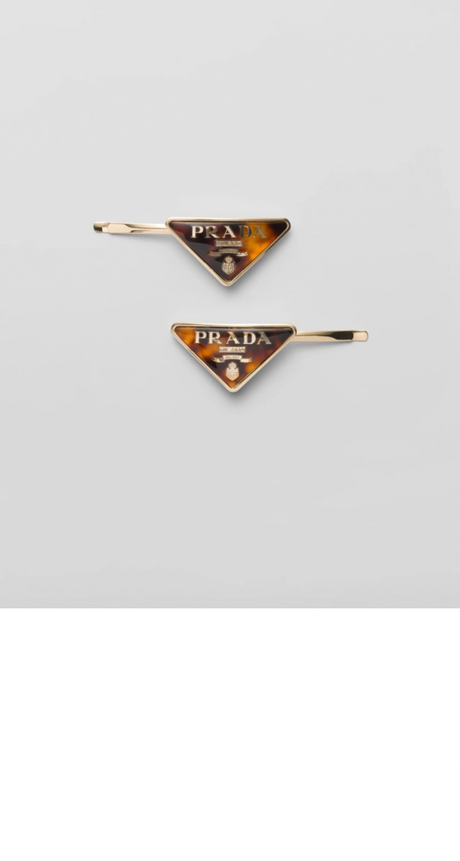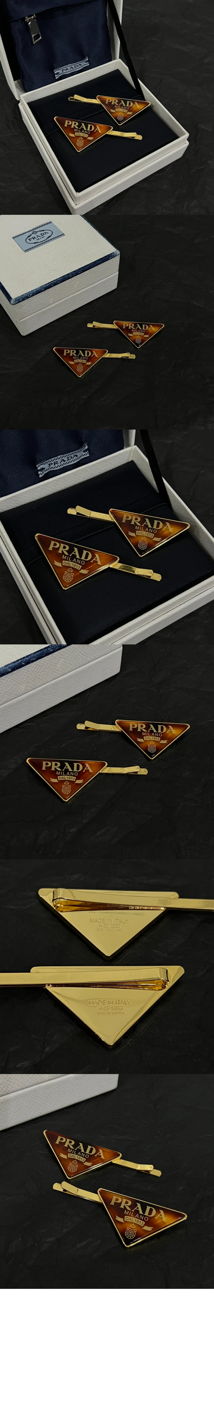 프라다 장식이 있는 브라스 헤어 클립 1IF098