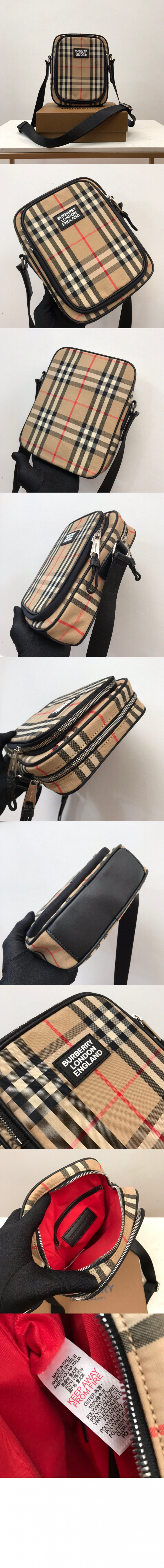 버버리 체크 레더 크로스바디백 80233811 > 하이엔드 남성관
