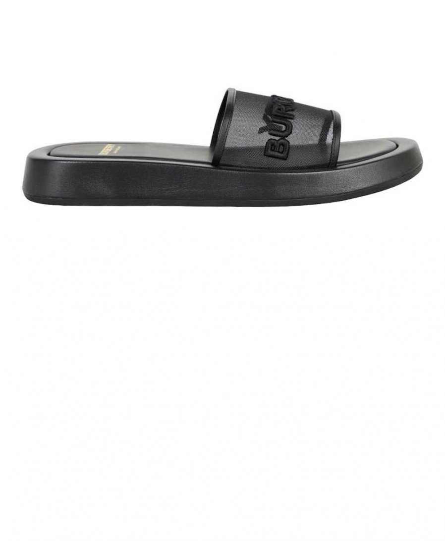 버버리 엠브로이드 로고 메쉬 앤 래더 슬라이드 80392501