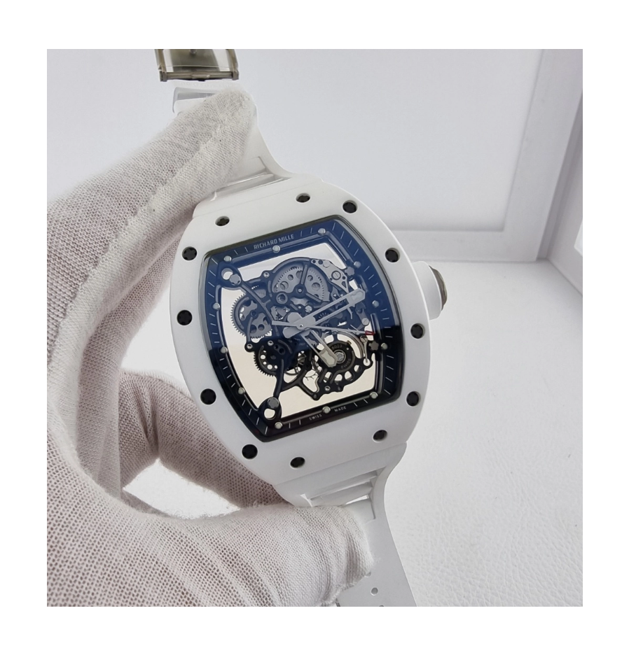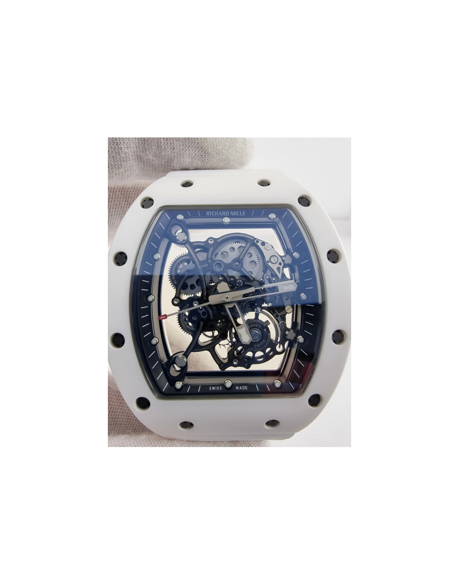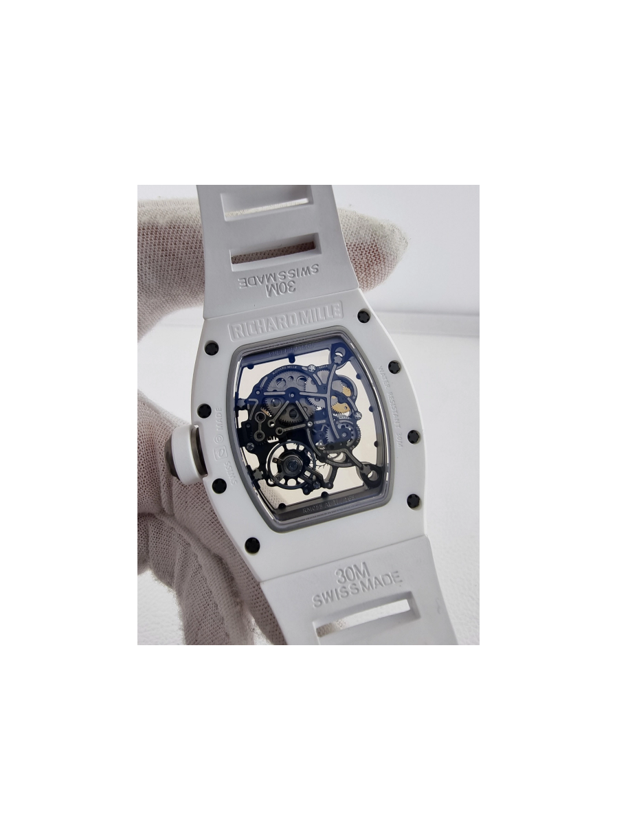 리차드밀 부바왓슨 RM-055 블랙&화이트세라믹 스켈레톤다이얼 화이트러버스트랩 RICHARD MILLE RM-055