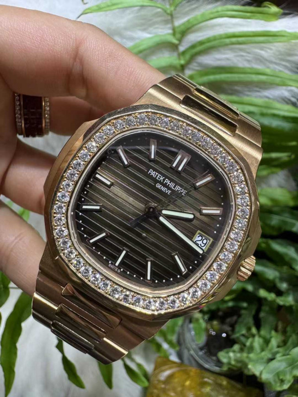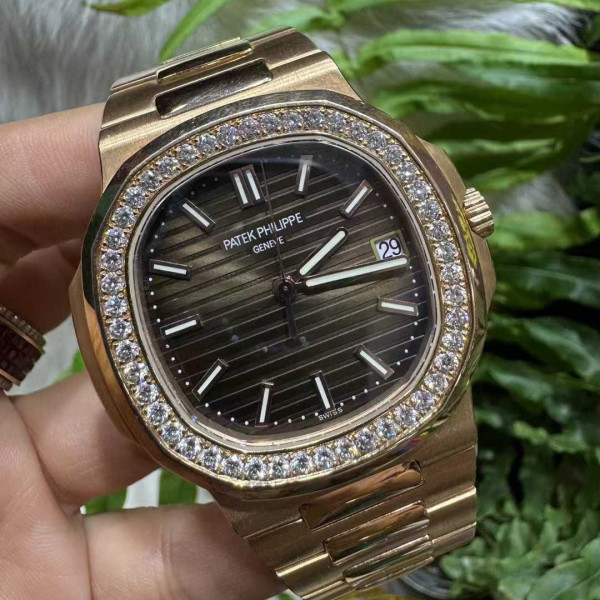 파텍필립 노틸러스 다이아베젤 브라운 금통 시계 워치