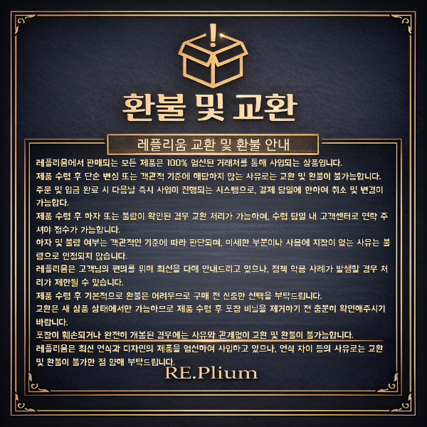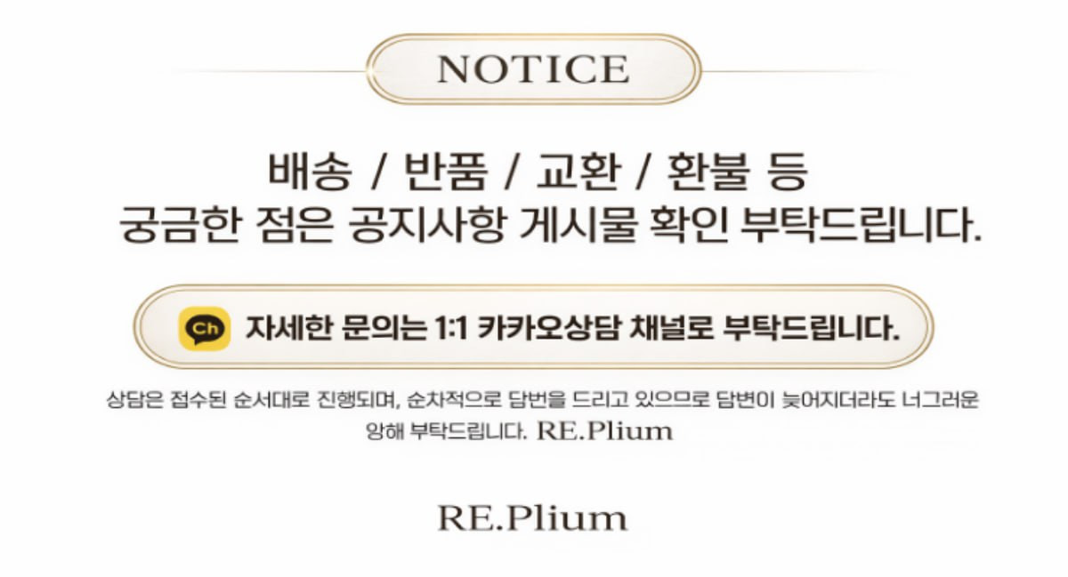 ♥환불규정 안내드립니다 ♥ 페이지 정보 작성자 RePlium 댓글 0건 조회 3회 작성일 26-03-07 18:57 목록 답변 글쓰기 본문 자세한 내용은 카톡으로 문의 부탁드립니다 이전글♣배송관련 안내드립니다♣ 26.03.07 댓글 0 댓글목록 등록된 댓글이 없습니다.
