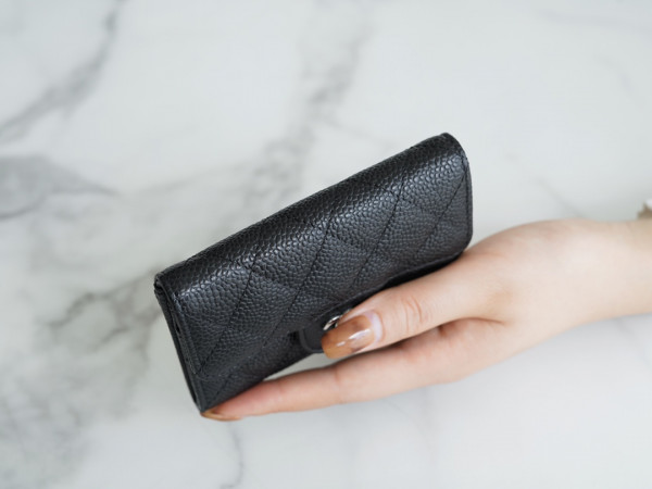 샤넬 클래식 똑딱이 카드슬립 카드지갑 캐비어 은장 AP0214