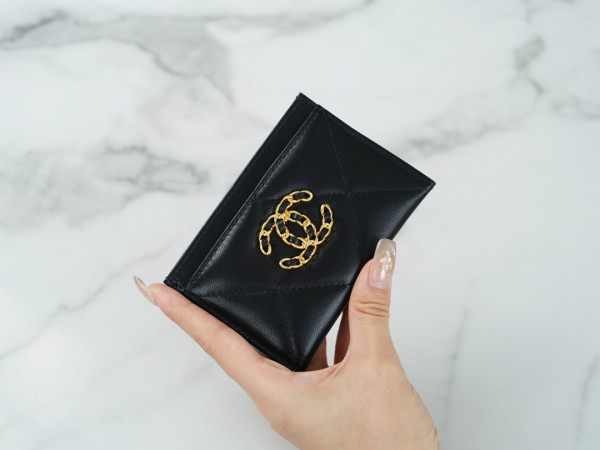 • 샤넬 카드 지갑 램스킨 금장 블랙 AP1167