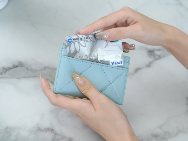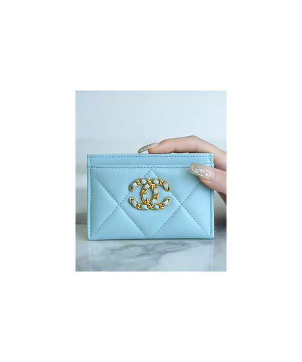 • 샤넬 카드 지갑 램스킨 금장 스카이 AP1167