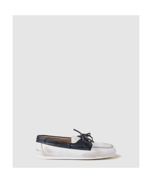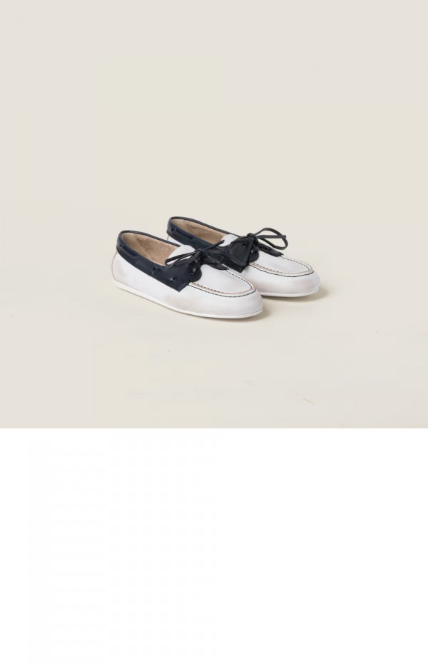 미우미우 안감 없는 블리치드 투톤 가죽 로퍼 5D123E