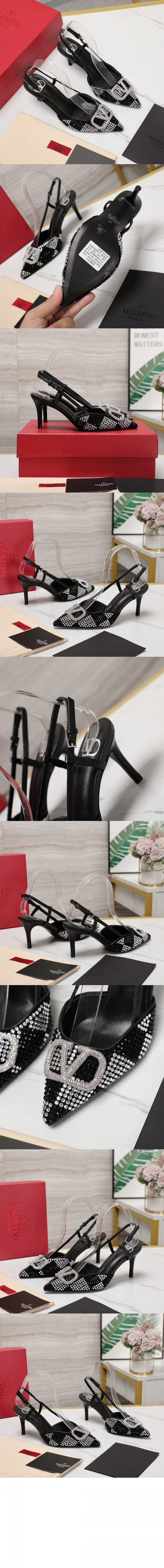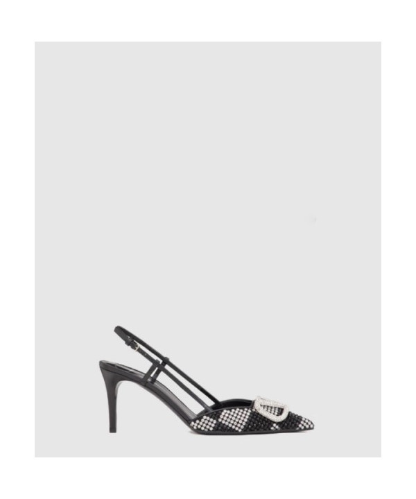 • 발렌티노 로고 크리스탈 임베리쉬드 레더 슬링백 펌프스 3W0S0R