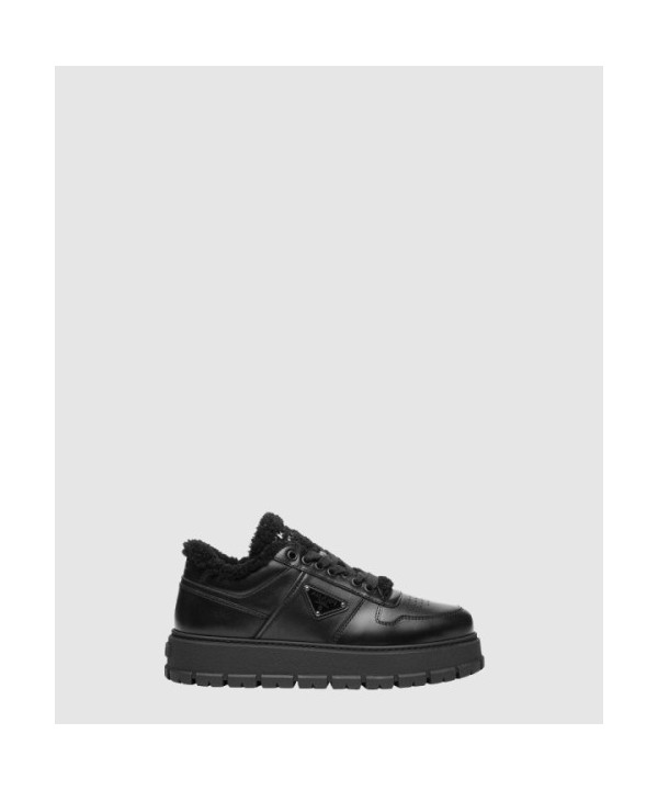 프라다 시어링 디테일 레더 스니커즈 1E947M