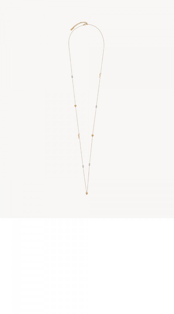 생로랑 메탈 소재의 라인스톤 롱 네크리스 697936