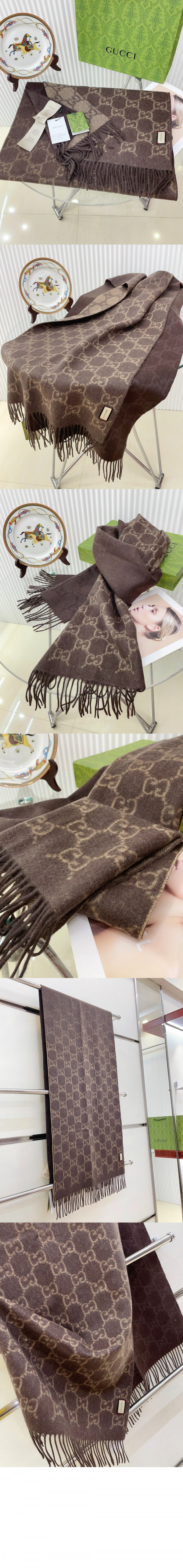 • 구찌 태슬 디테일의 GG 자카드 니트 스카프 764634