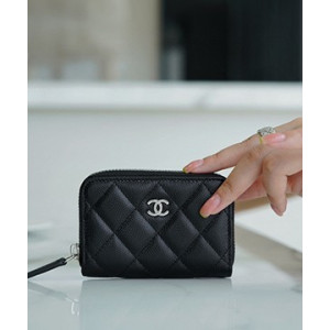 샤넬 클래식 지퍼 동전 지갑 캐비어 은장 AP0216