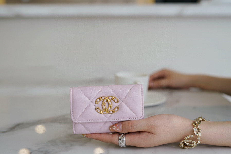 샤넬 19 플랩 카드지갑 램스킨 금장 연핑크 AP1790 > 하이엔드 여성관