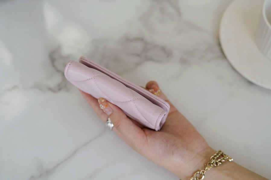 샤넬 19 플랩 카드지갑 램스킨 금장 연핑크 AP1790