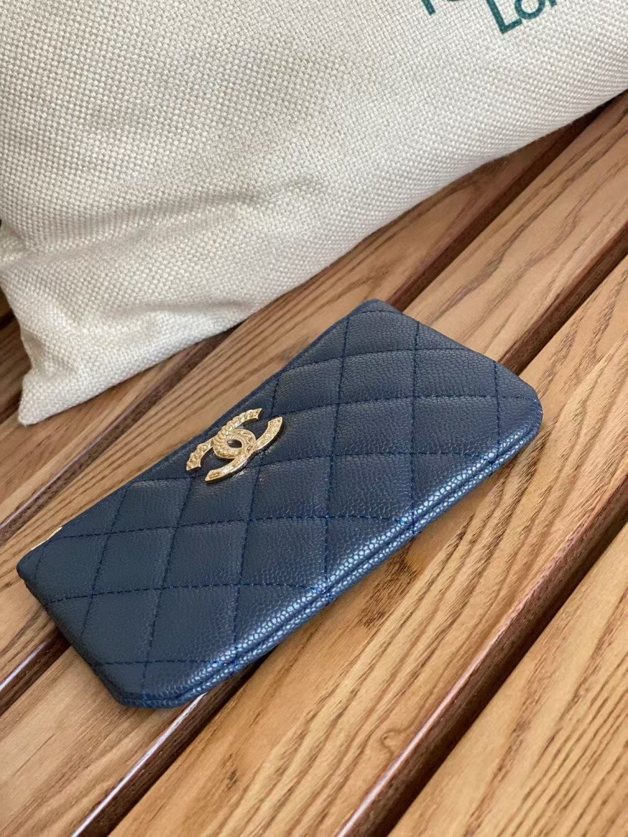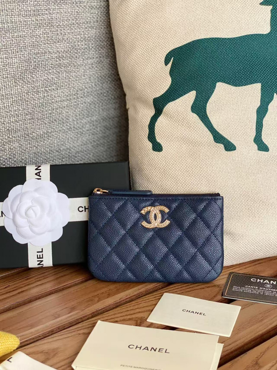 샤넬 클래식 미니 파우치 네이비 캐비어 금장 15 x 9.5CM