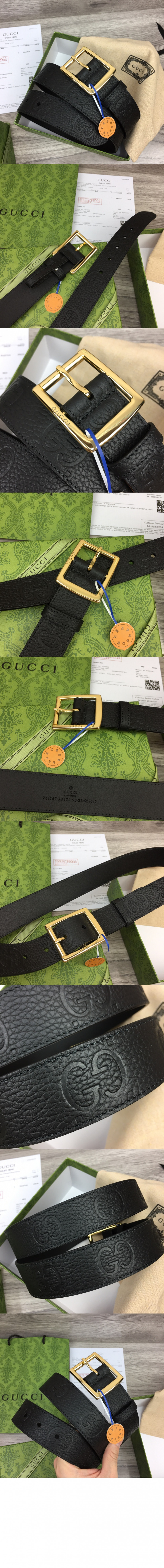 구찌 GG 러버 효과 레더 벨트 761567